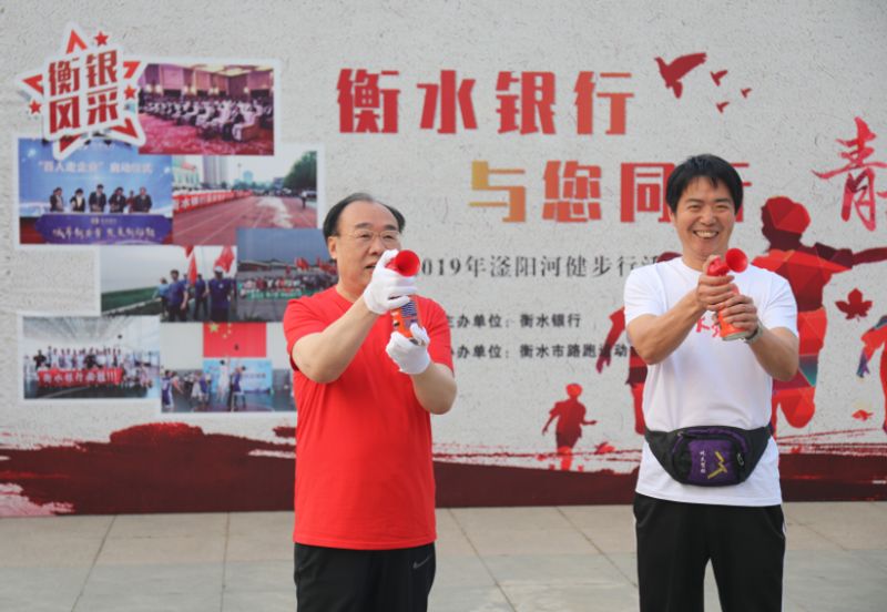 當(dāng)日上午6時(shí)30分,我行黨委書(shū)記白金芳、衡水市路跑協(xié)會(huì)會(huì)長(zhǎng)何宏斌共同按響了開(kāi)拔的汽笛,健步行活動(dòng)正式開(kāi)始,1500人的隊(duì)伍浩浩蕩蕩出發(fā)。行進(jìn)中,大家精神抖擻、闊步向前,歡快的笑語(yǔ)、攜手的鼓勵(lì),暢快的汗水,一并揮灑在衡水銀行紅色的海洋里,與美麗的滏陽(yáng)河共同形成一道亮麗風(fēng)景。